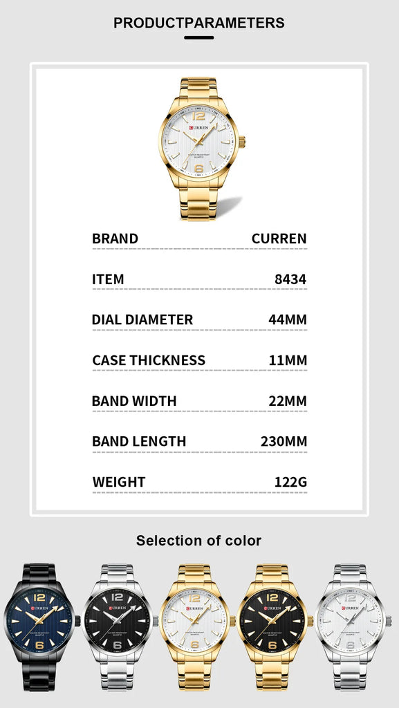 CURREN 8434 marque de mode montre pour hommes étanche veilleuse élégante affaires bracelet en acier inoxydable hommes cadeau montre reloj hombre
